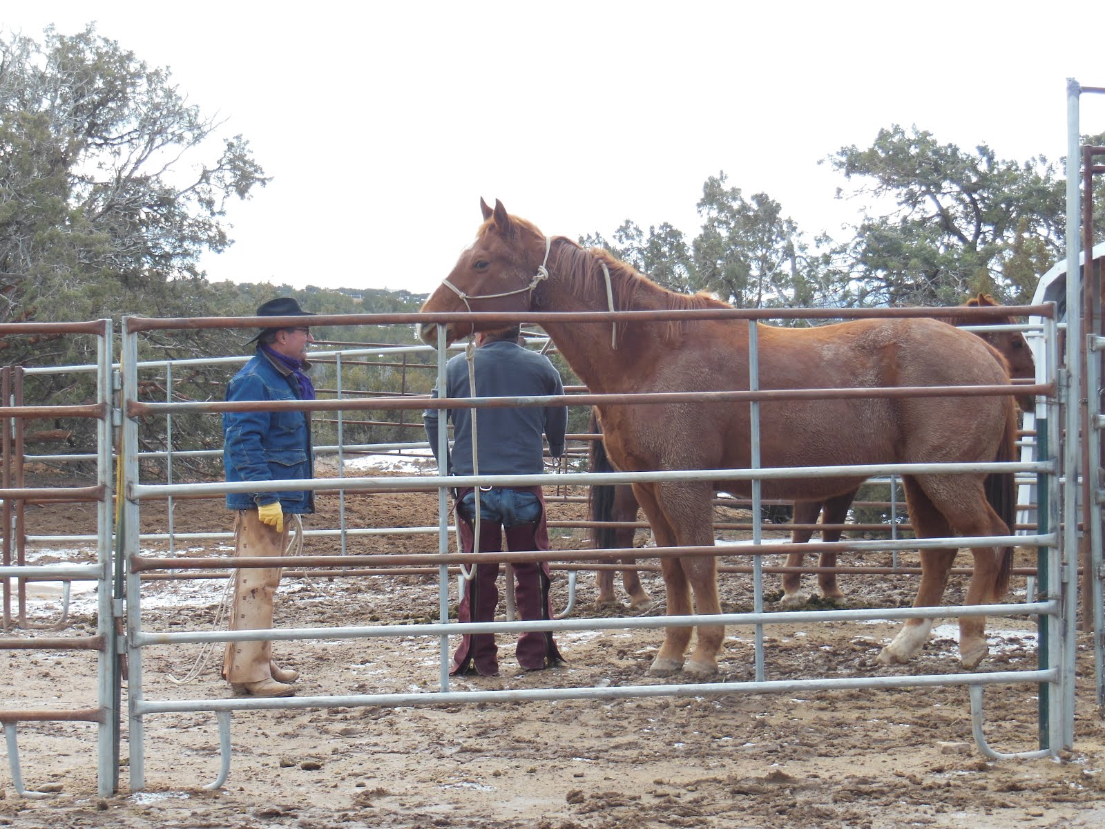 Later that day our Border Patrol family came by to catch up! Husband Patrick Reilly helps his wife Nicle saddle up Duke for a little exercise.
